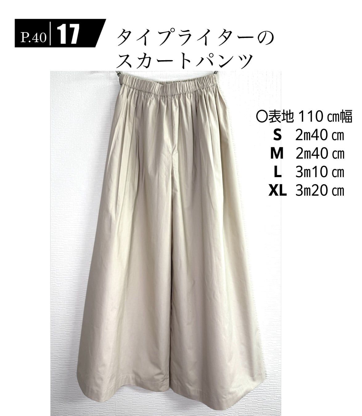 コットン100%の服。(主婦と生活社刊) 掲載の17と18です。 縫い代がついている型紙です。 ※出来上がり寸法・生地の裁ち方図・作り方は 「生地選びで失敗しない コットン100%の服」の42ページをご覧ください。