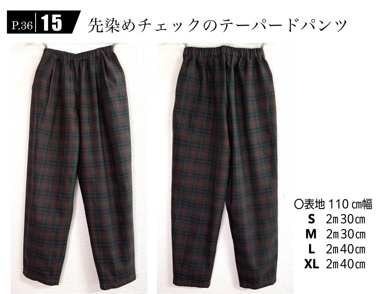 コットン100%の服。(主婦と生活社刊) 掲載の15と16です。 縫い代がついている型紙です。 ※出来上がり寸法・生地の裁ち方図・作り方は 「生地選びで失敗しない コットン100%の服」の38ページをご覧ください。